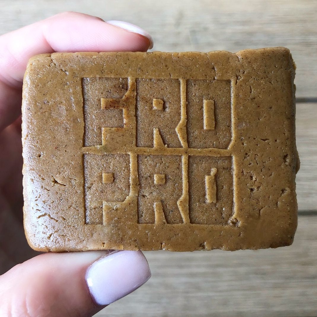 Each bar is hand crafted, plant-based, gluten free, dairy-free, soy-free, non-GMO and stamped “FROPRO” for your chilled enjoyment. They also pack 9-10g of protein.
