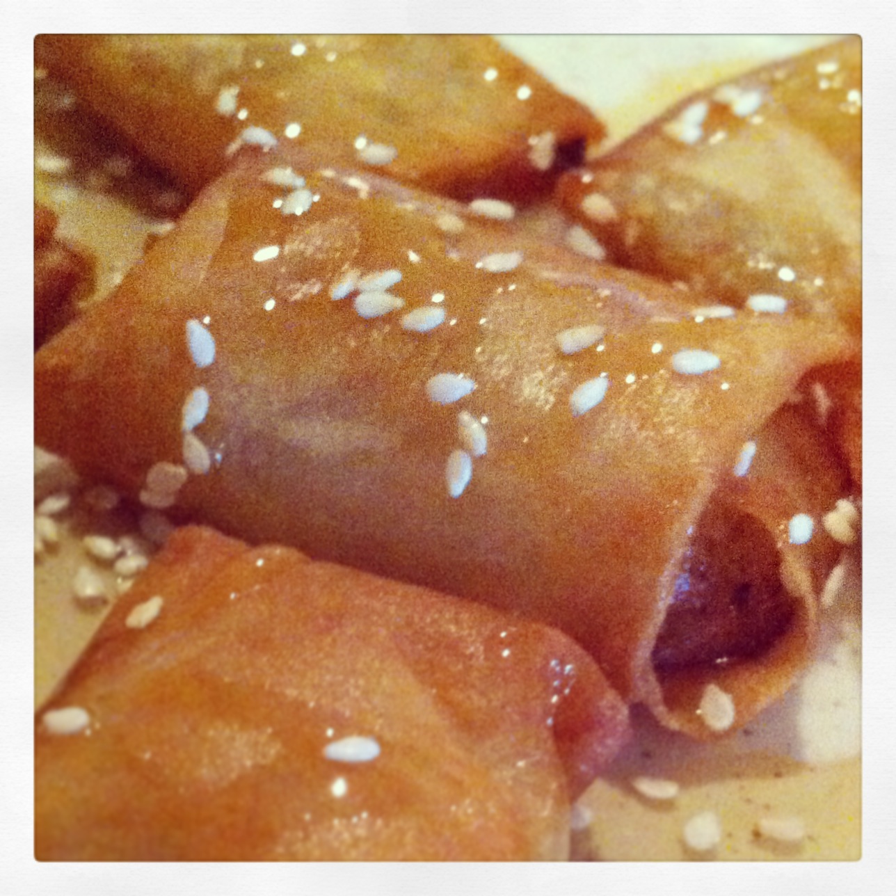 For dessert we had the Fried Bananas which are sliced bananas in a spring roll wrapper, fried and topped with honey. They are simple but hot, sweet and delicious.