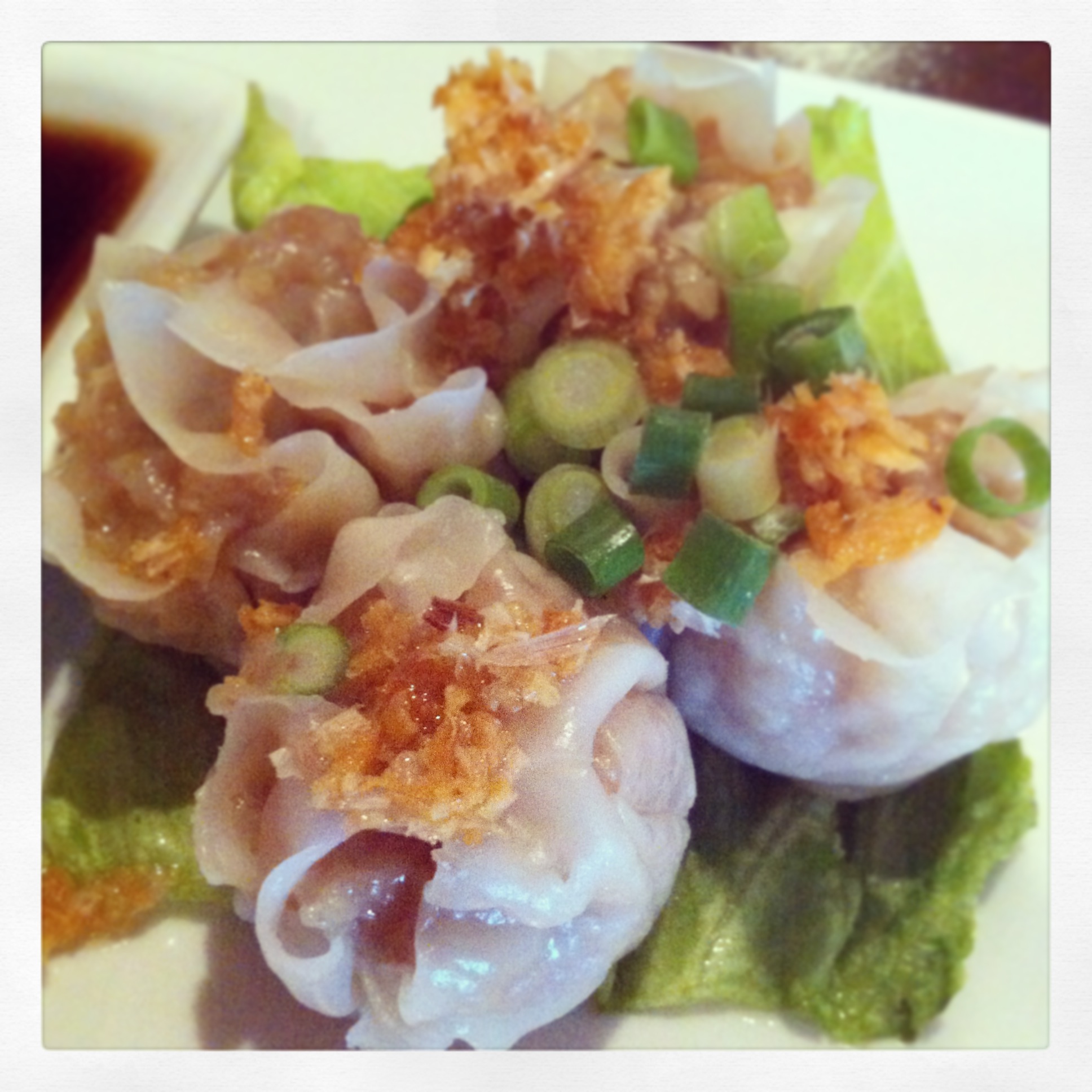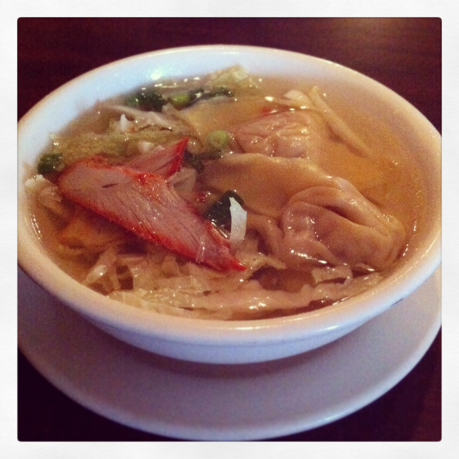 We started with the Steamed Dumplings which are like a pork meatball wrapped in shiu mai or wonton wrapper and steamed. It was served with a thick glaze that had a nice sweet flavor. The presentation was really pretty but I wasn’t too thrilled with them to be honest. I had a cup of the Wonton Soup though I actually prefer their Chicken and Rice Soup which is especially good when sick.