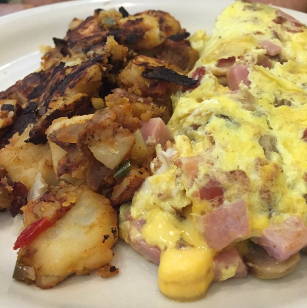 I went with the Short Stack of Pancakes with an egg and some bacon and the bottomless coffee. The pancakes were light and fluffy and the bacon was cooked just the way I like it – a little crispy. The hubs went with the Colorado Omelet which was packed with goodies and came with a side of Home Fries. I had a bite and it was delicious. Fair warning, there are peppers and whatnot in the home fries so if that’s not your thing maybe steer clear.
