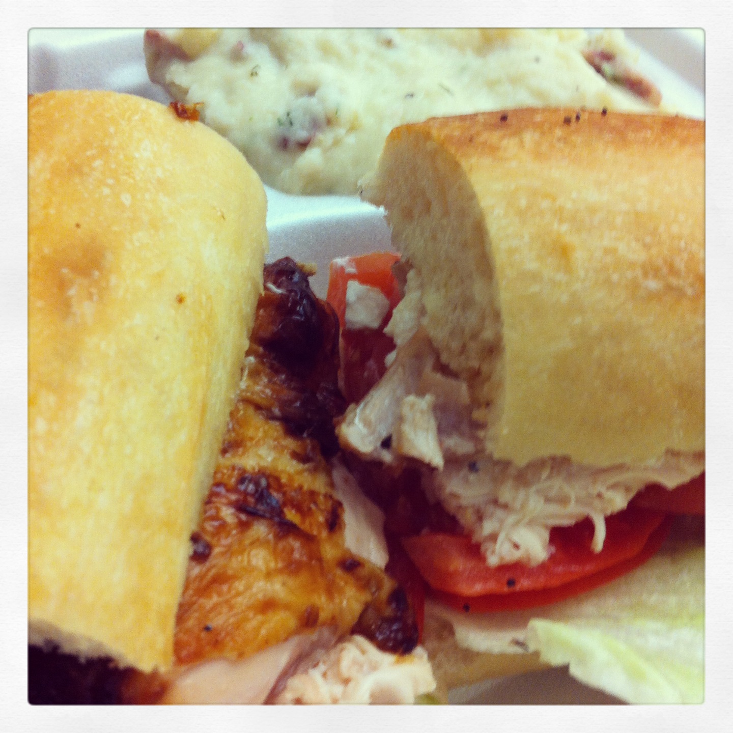 The offerings are simple, but quick, yummy and affordable. The “Smokey” is one of my favs and is a Penne Pasta with Smoked Chicken and a Tomato Basil Cream Sauce. It’s a huge portion that I can only finish if I order it “No C” (no chicken). The “CnA” is their Chicken and Artichoke Linguine which is topped with tasso, garlic, tomato and herbs. I also love the Chicken Breast Sandwich, which features their boneless breast with mayo, lettuce and tomato. Sandwiches are served on their delicious fresh baked loaves and come with a side.