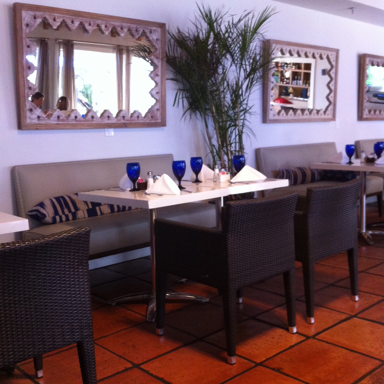 It was a little warm out, so we decided to sit inside by the large windows to get the ambience with the A/C. The inside is casual but beautiful with mirrors reflecting the light and a blend of textures creating an inviting space.