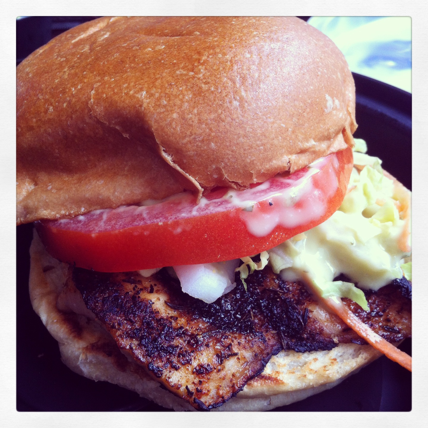 My usual is the Blackened Fish Sandwich with mahi, tomato, a Mexican slaw and topped with a cilantro-jalepeno mayo. I normally eat almost any sandwich I order off the bun, but theirs is pretty tasty so it actually gets put to use. The fish has a thick layer of seasoning and the slaw and mayo help offset the heat. The slaw also gives the sandwich a nice crunch for some texture. It’s a little messy, but totally worth it. They have a small selection of sides including an entree-size Side Salad, fruit salad, etc.