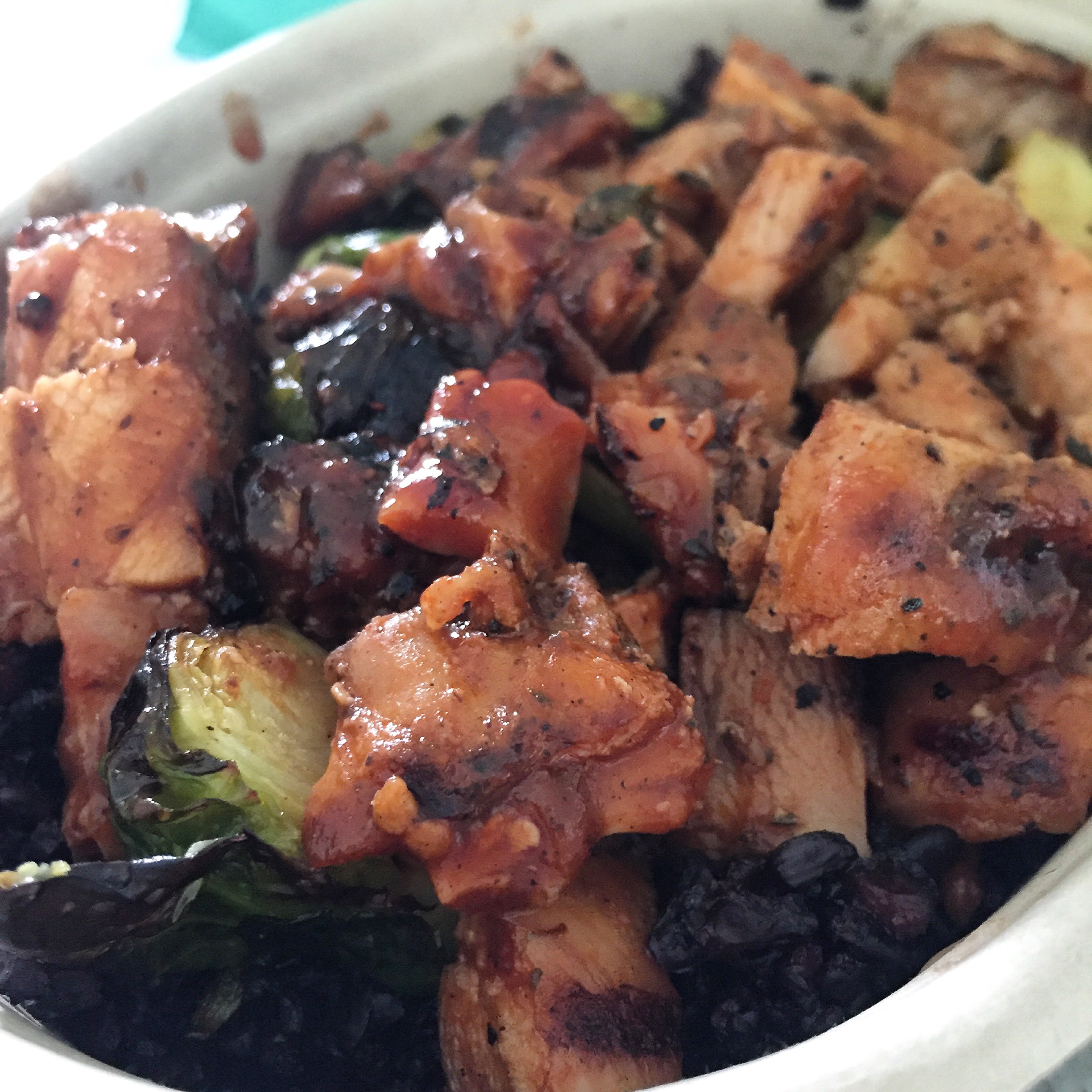 I decided to build a Small Bol with forbidden black rice, paleo brussels sprouts and BBQ chicken. I also grabbed a glass of the hibiscus raspberry tea. First off, everything was delicious – and I am all about healthy food that tastes good. What’s also awesome is that it was so filling and to that perfect level of being totally satisfied but not overfull.