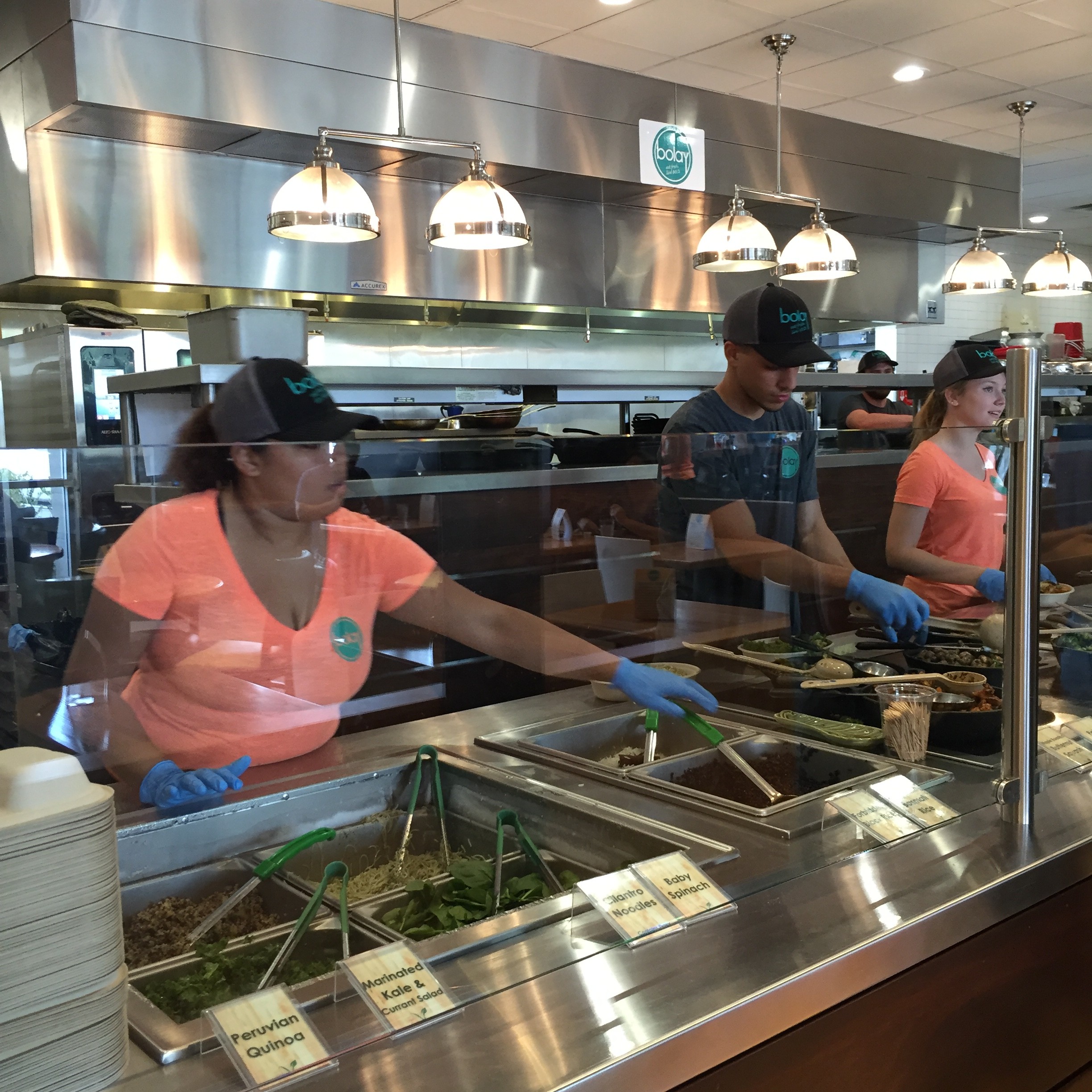 Bolay is essentially fast food for the health-conscious. You start off by picking what size Bol you’d like (Small or Large) and then start building via assembly line. For a base you have the option of a cold foundation like Peruvian quinoa, cilantro noodles or baby spinach or a warm option like basmati rice or forbidden black rice. Next you add on some veggies like balsamic mushrooms, maple roasted butternut squash or smokey cauliflower. Then you finish off with a protein like lemon chicken, pork tenderloin, sesame tofu, or ahi tuna if you’re feeling fancy. You can also top off with some finishing touches like minted tomatoes, goat cheese crumbles, parmesan cheese or an Asian herb mix.