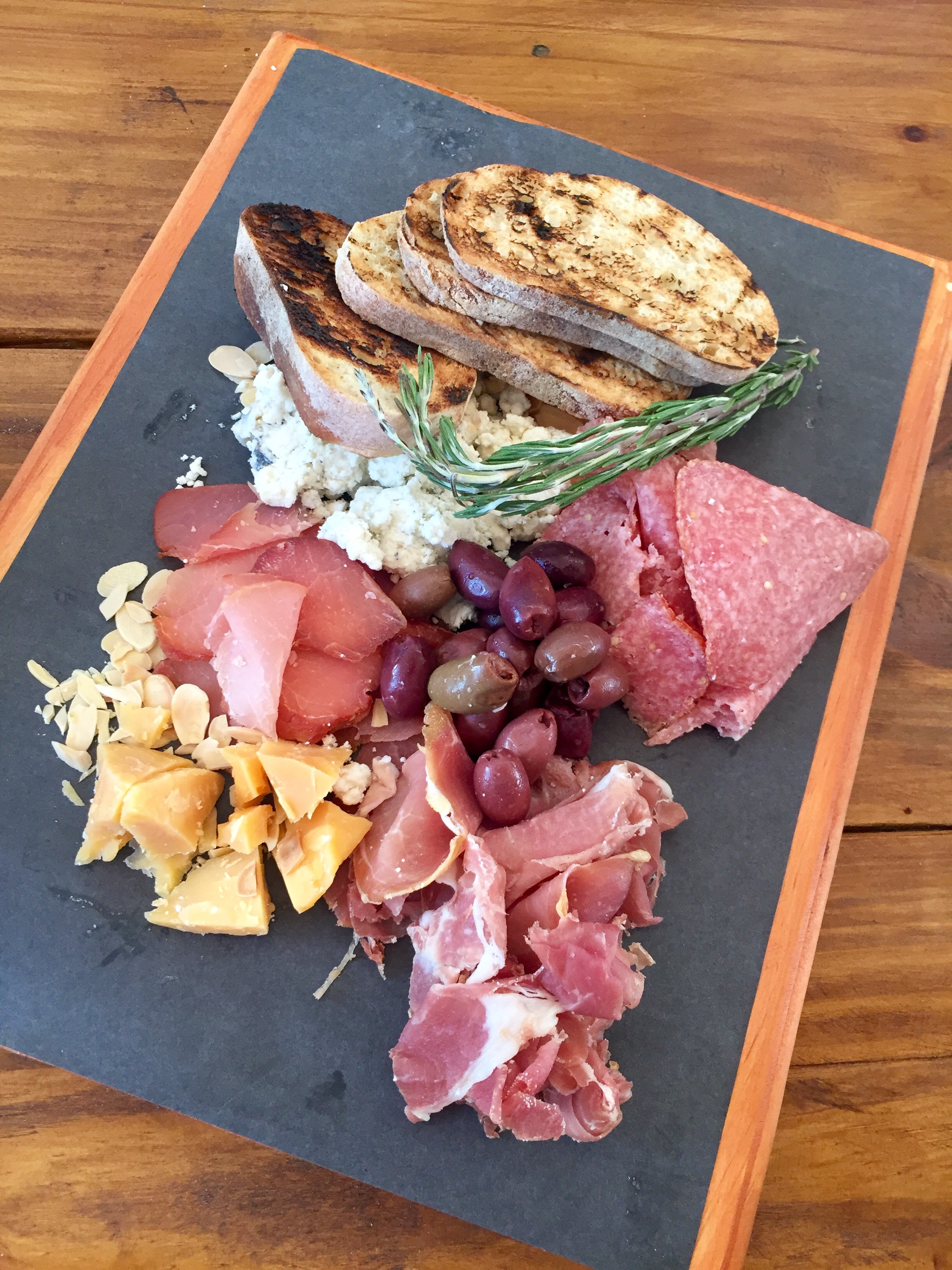 The table shared a heaping Charcuterie Board with Georgian Salami, Capacola, Smoked Pork Loin, with a rotating option of cow’s milk cheese and goat cheese, Kalamata olives and tomato jam with sliced toasted ciabatta.