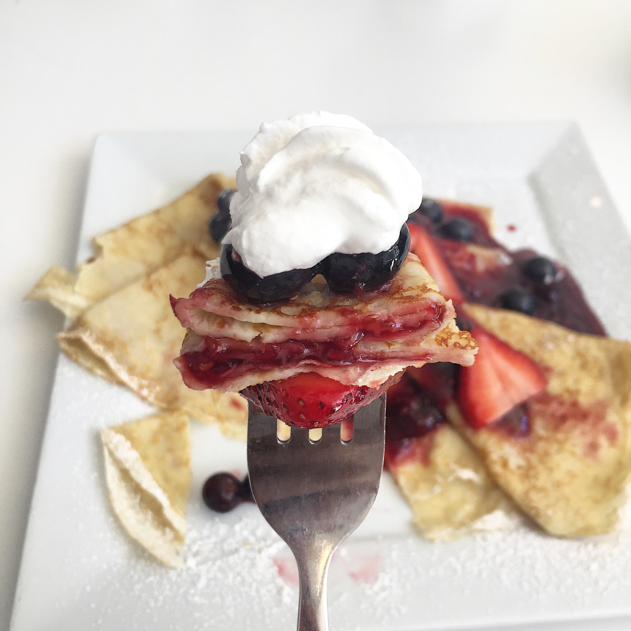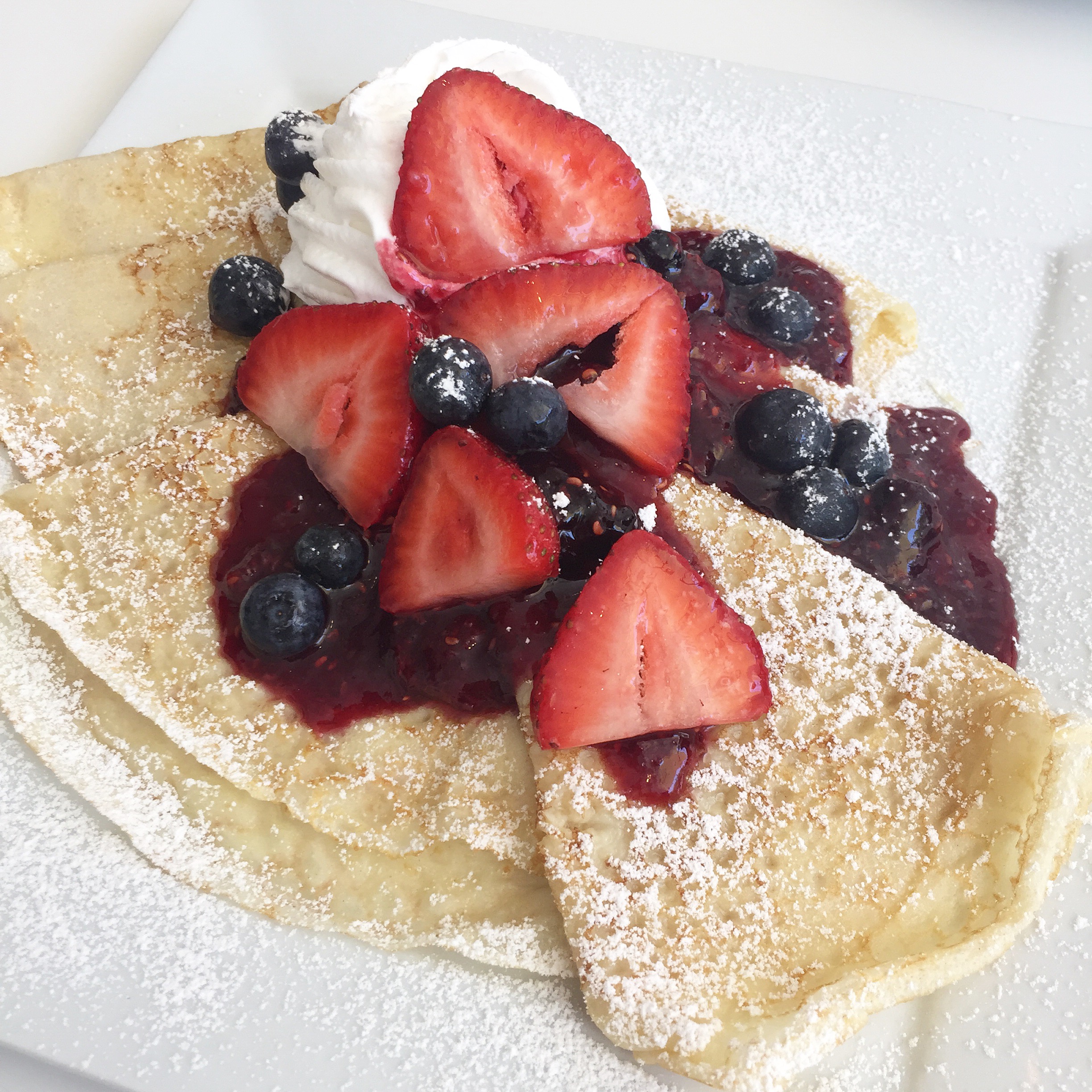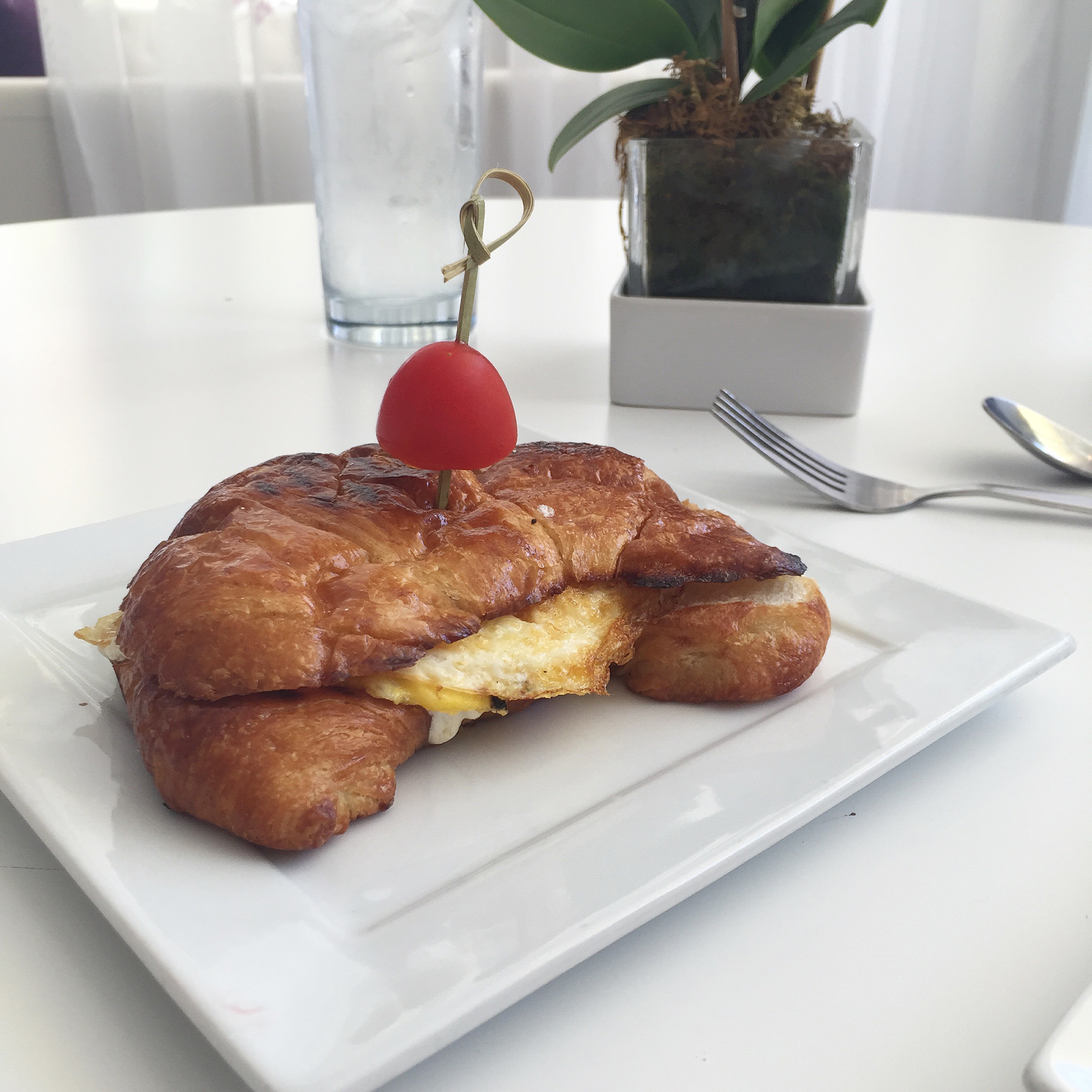 I went with the recommendation of the Swedish Pancakeswhen in Rome, right? They were similar to a crepe and topped with berry preserve, fresh berries, thick whipped cream and sprinkled with powdered sugar. I essentially licked the plate clean – so so good. While the iced coffee wasn’t as pretty to look at as the gorgeous hot coffee, it was equally fantastic. If you’re a coffee lover, make a trip! We also had an Egg & Cheese Croissant which was a buttery and delicious savory option.