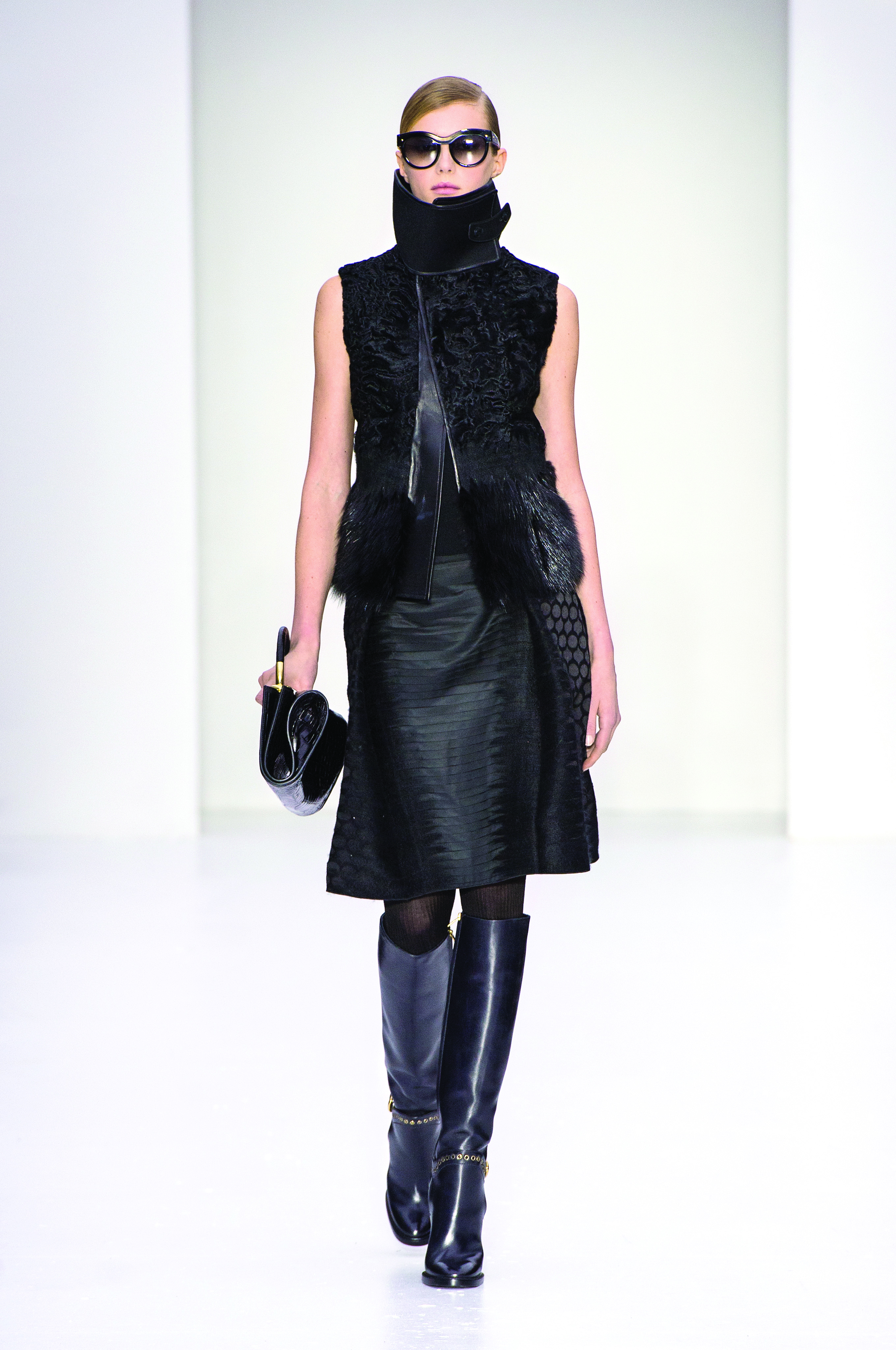Chic chubbies and peacoats and pants, oh my! One side effect of last year’s so-called polar vortex is a newfound obsession with bundling up. Indeed, although outerwear is always an important story for fall, it’s even more dominant this season with cozy fabrics like fur and shearling dominating major runways, including double alpaca coats at Gucci, and Emporio Armani’s exquisite faux fur pelts. To showcase the look in milder climates like sun-drenched South Florida, opt for a lighter touch with accessories like fur-accented bags or exotic print boots.